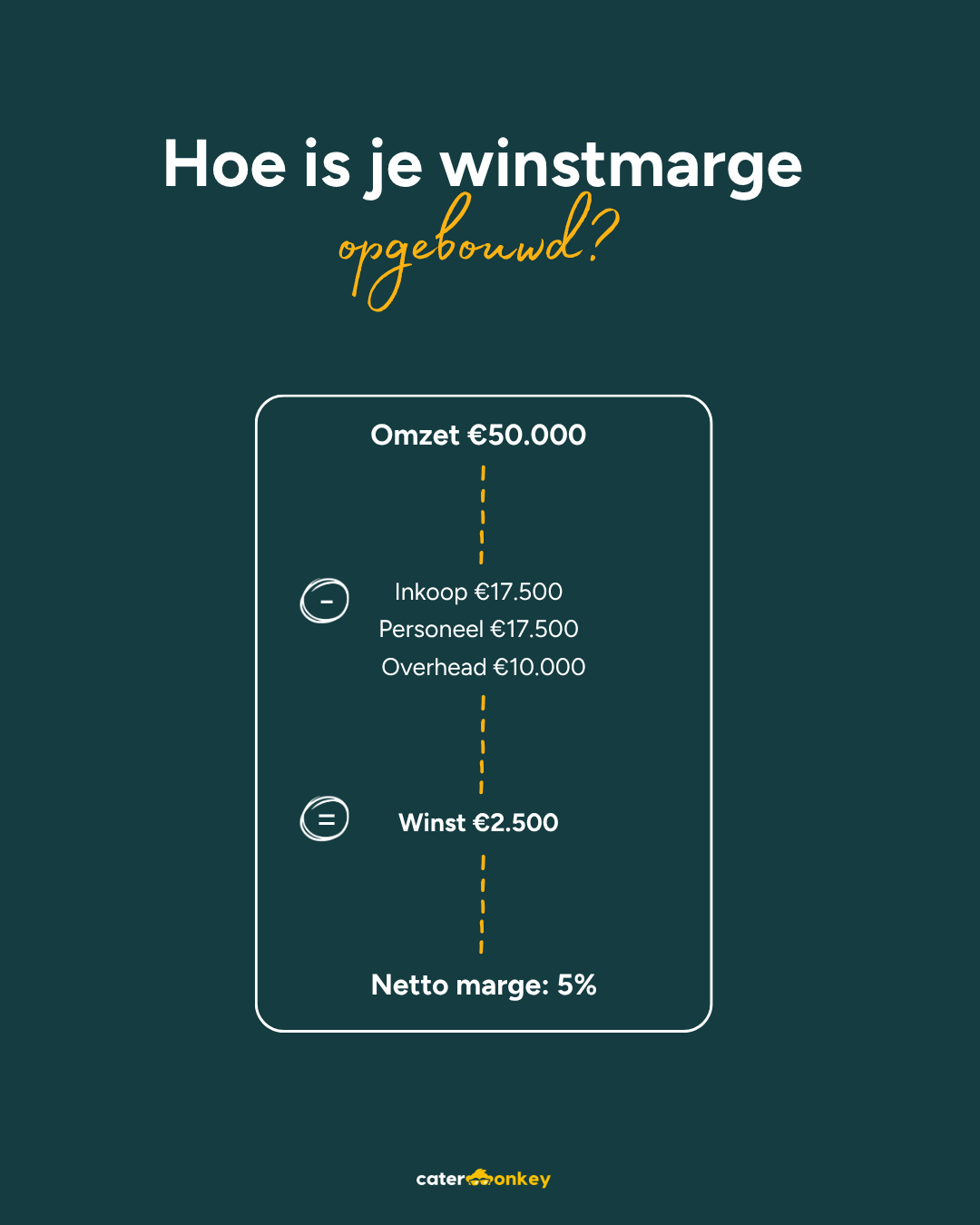 Om je winstmarge in de horeca te berekenen gebruik je de volgende formule:
