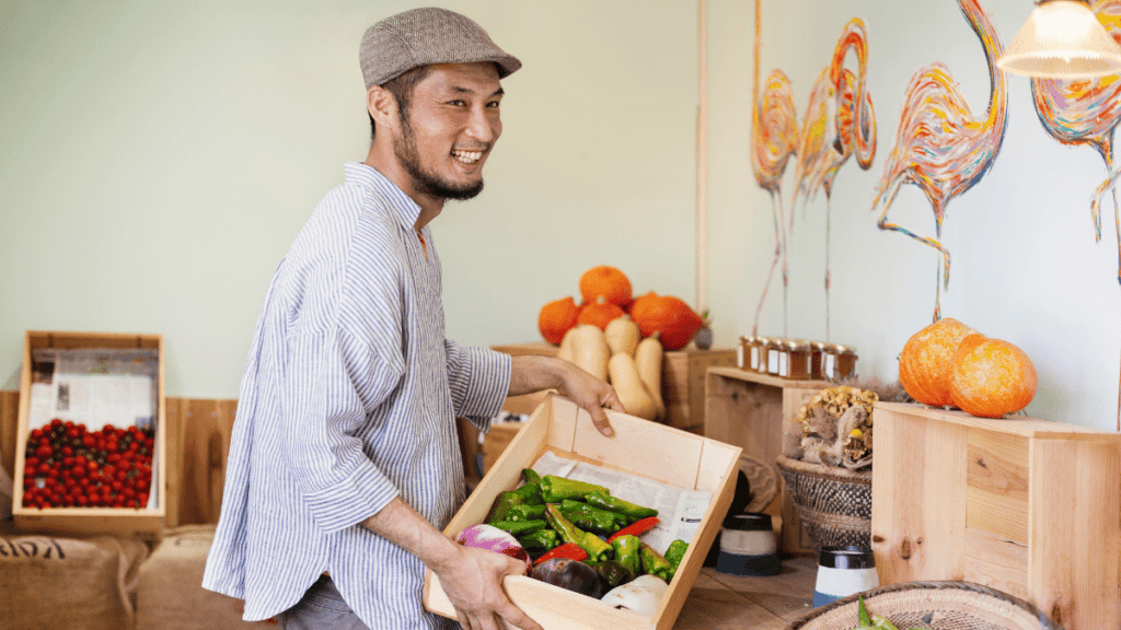 Denk aan: streekbieren, lokale kazen, seizoensgroenten of zelfs ambachtelijk gebakken brood van de bakker om de hoek.