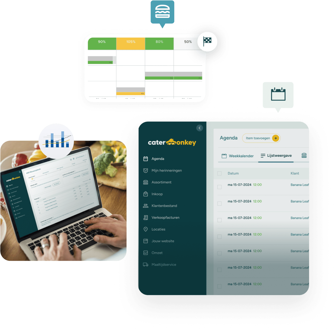 Catermonkey vertelt jouw marge per ingrediënt, gerecht, buffet, pakket, en event. In realtime.