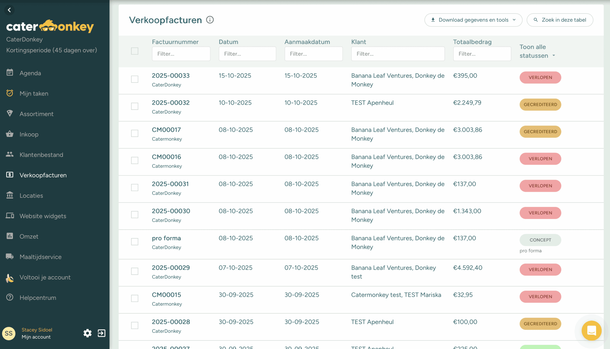 Factureren hoeft geen losse stap te zijn. Zodra een offerte in Catermonkey is bevestigd, staat de factuur klaar. Je verstuurt deze met één handeling, zonder gegevens opnieuw over te nemen of te controleren.
