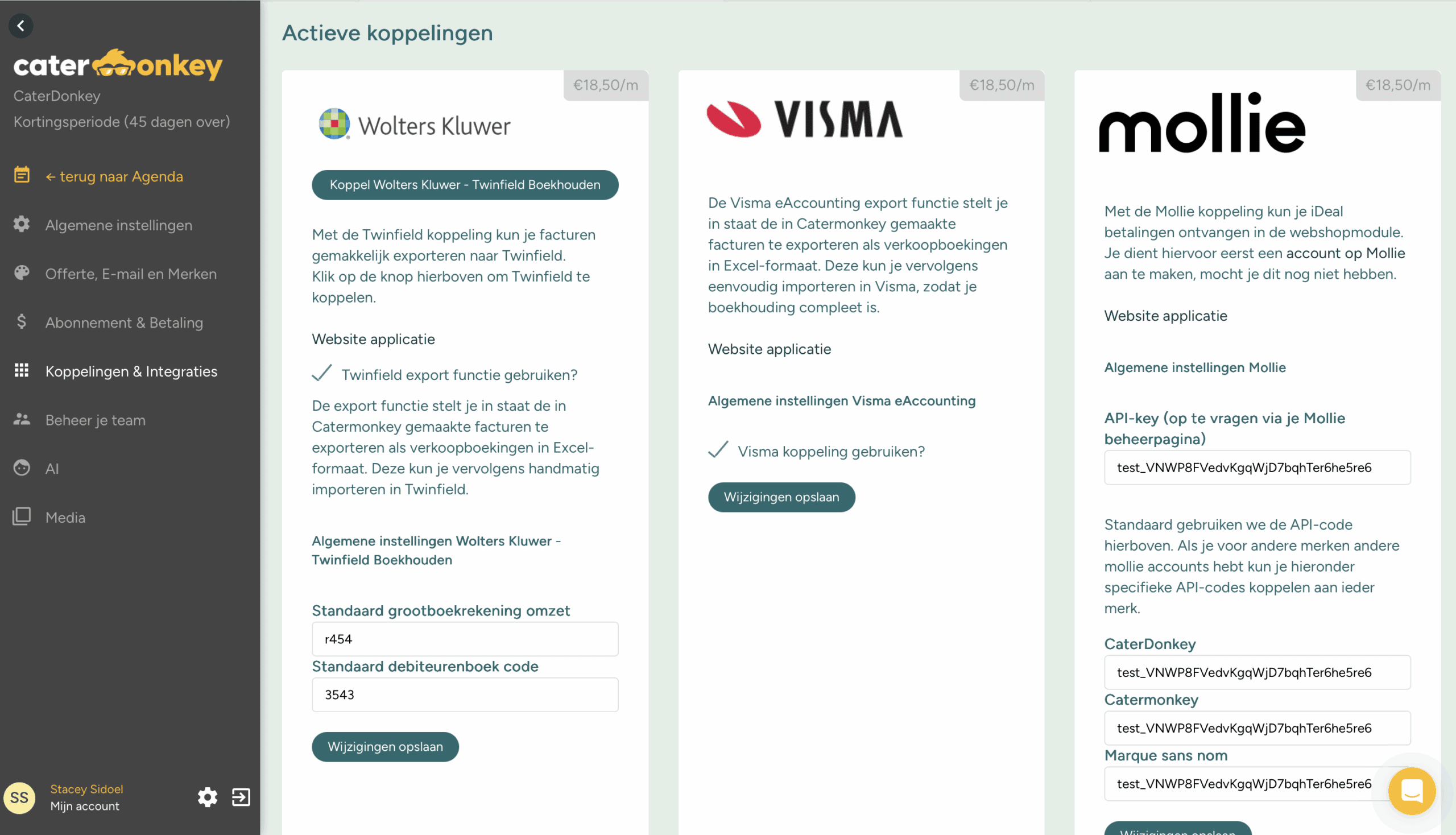 Koppel Catermonkey eenvoudig met je favoriete boekhoudsysteem en zorg dat al je financiële gegevens automatisch gesynchroniseerd worden.