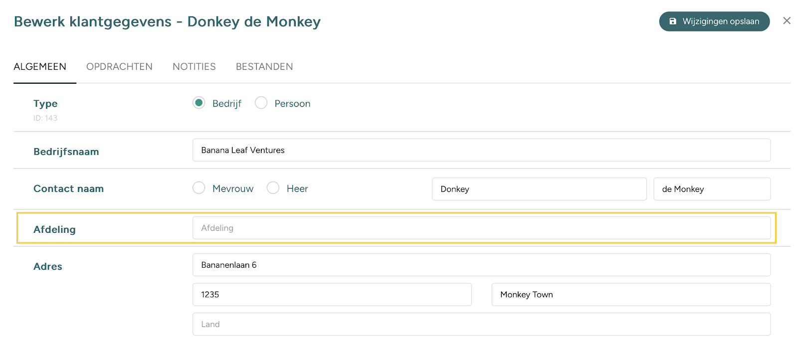 In het bedrijfsklantprofiel kun je nu een afdeling toevoegen, die ook op de factuur wordt vermeld. Dit geldt ook voor de verschillende contactpersonen die je aan dit profiel hebt toegevoegd.