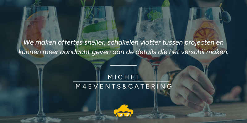 M4Events&Catering is een allround partycateraar die grote en middelgrote events verzorgt, vaak in samenwerking met andere professionals. Hun kracht zit in de combinatie van schaalbaarheid en betrouwbaarheid: of het nu gaat om bedrijfsfeesten, walking dinners of grootschalige partijen. We spraken met het team over hoe zij hun processen stroomlijnen.