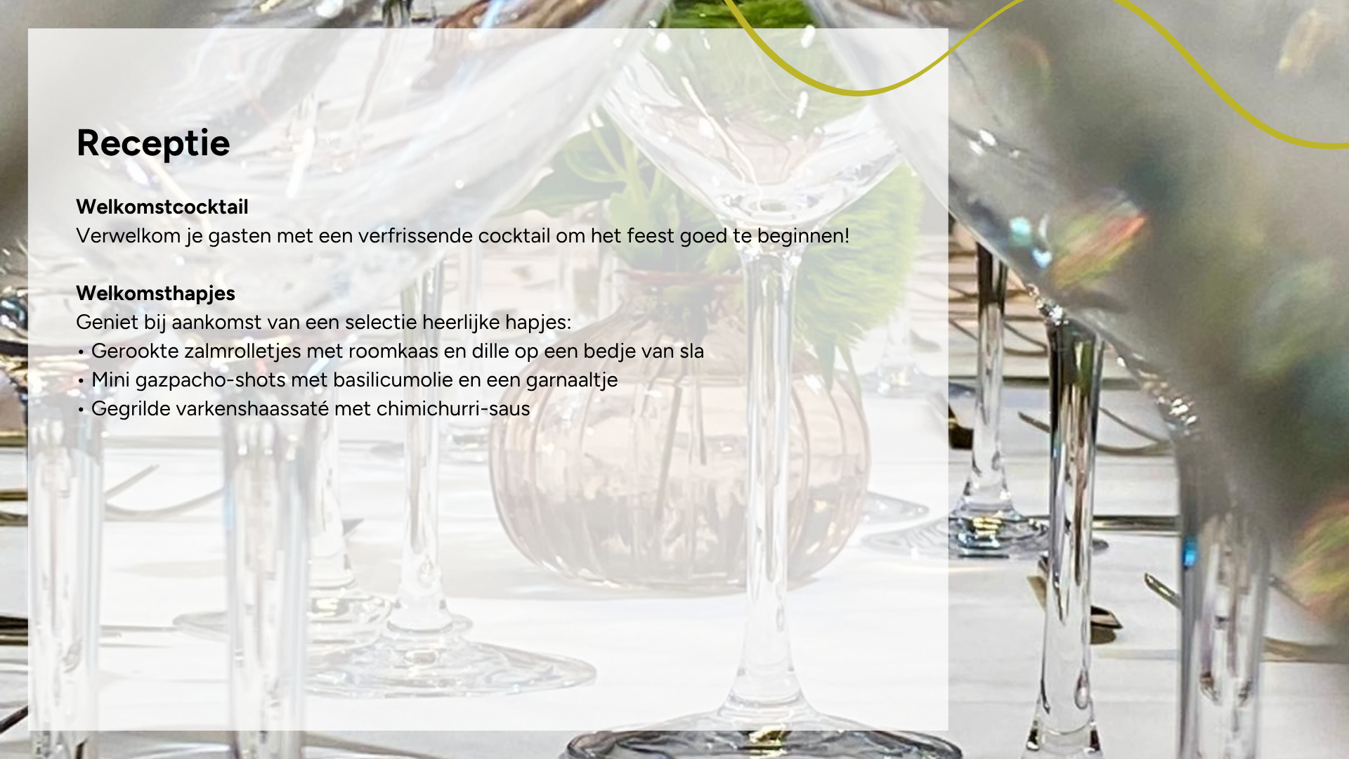 Laat klanten feestconcepten kiezen en hun gegevens invullen op jouw website, zodat jij vanaf het eerste contact direct de juiste info hebt voor een offerte – zonder te knippen en plakken.
