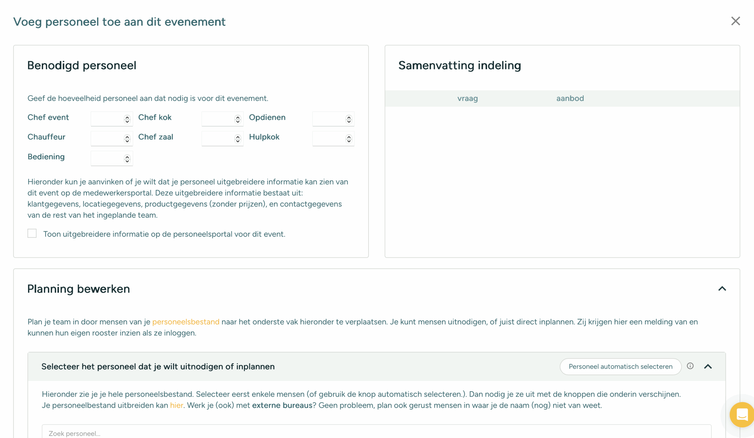 Vraag vooraf de beschikbaarheid op en selecteer per event of opdracht welke medewerkers je wilt koppelen.